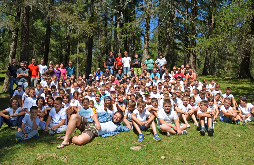 Eine weitere Station des ereignisreichen Tages war die Besichtigung des Zirmerhofes der Familie Amort, auf dem 700 Hühner in Freilandhaltung und 9 Kühe gehalten werden. Albert Amort weihte die Jungschützen und Jungmarketenderinnen in die Käseproduktion ein. Die letzte Station des Tages war der Besuch zweier Jäger, die den Kindern und Jugendlichen die Jagd erklärten und über den Naturpark Trudner Horn informierten. Am Freitagabend war der Besuch von zwei Sagenerzählern angesagt. Die beiden Hauptmänner der Kompanien Truden und Altrei erzählten am Lagerfeuer Sagen aus dem Südtiroler Unterland.