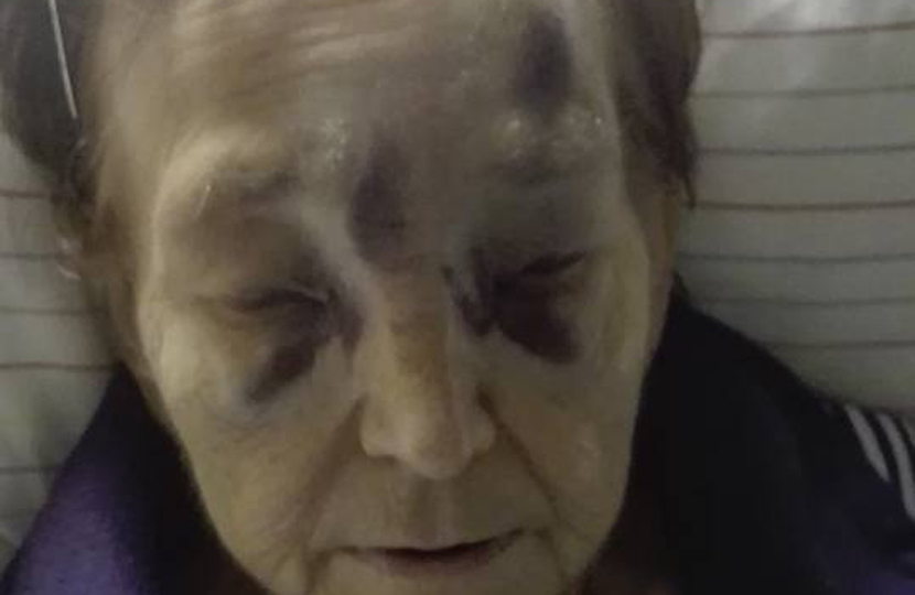 Während der Gewalteskapaden hat der 34-Jährige, der an einer akuten Psychose leidet, auch eine 71-jährige Frau im Rollstuhl schwer verprügelt. Dabei wurde die Frau vor allem im Kopfbereich erheblich verletzt, wie auf Bildern, die bei Facebook ihre Runde machen, klar zu erkennen ist.