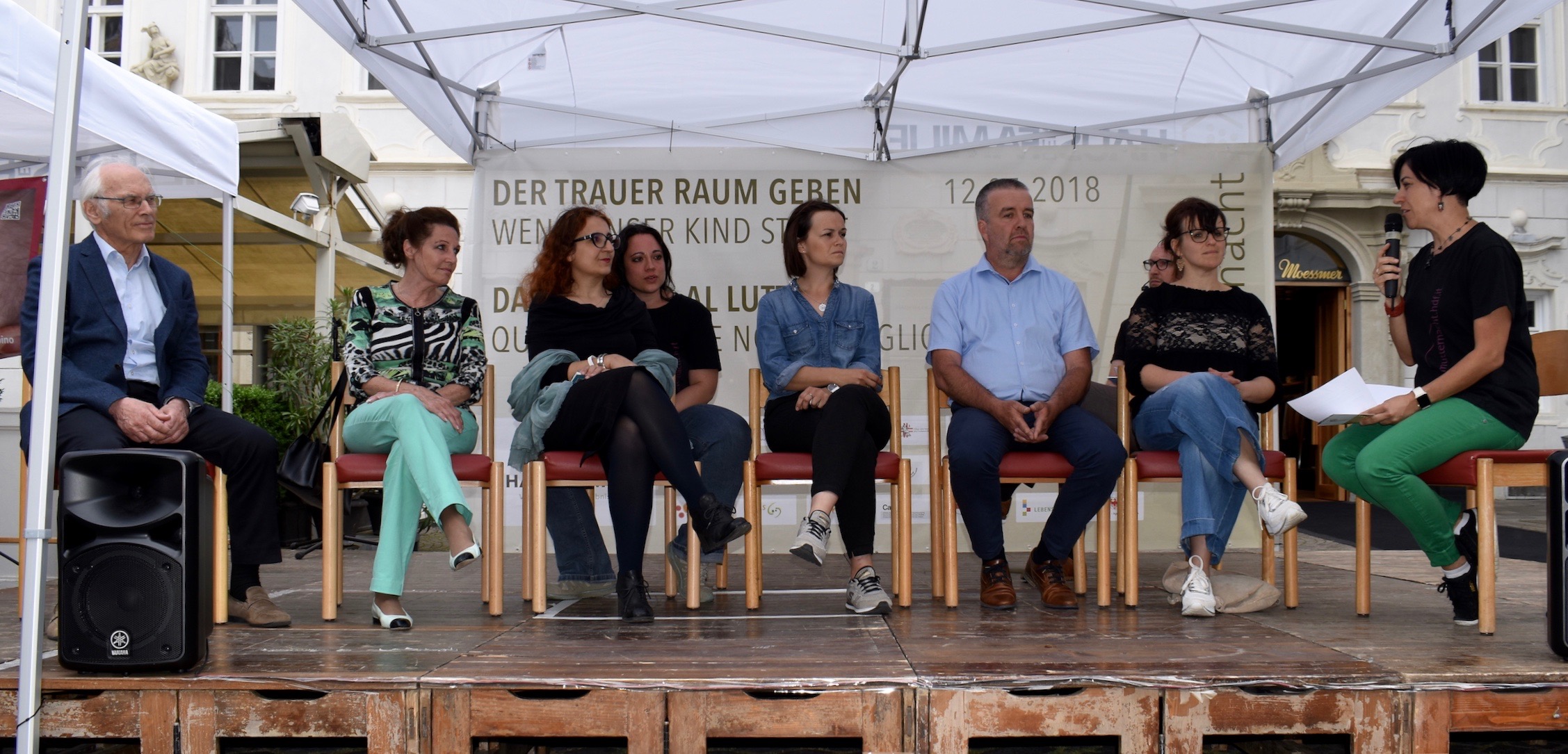 Der Paartherapeut und Priester Josef Torggler verwies auf die unterschiedlichen Ausdrucksformen von Trauer bei Frau und Mann und auf die Gefahr, dass sich Eltern nach dem Tod eines Kindes verlieren. Die Psychiaterin Claudia Ravaldi aus Prato hat selbst ein Kind verloren. Fachleuten helfe die persönliche Betroffenheit, sagte sie. Eltern, die ein Kind verlieren, dürften zornig sein, traurig sein, weglaufen wollen. Wichtig seien das Gespräch und die Inanspruchnahme von Hilfe. Sie befürwortete die offene Diskussion auf dem Platz. „Hier kann man das rauslassen“, sagte sie, hier man könne den Schmerz teilen.