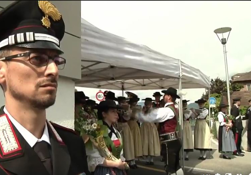 LA BANDA MUSICALE DELLA TEDESCA CORNEDO SUONA L'INNO DI MAMELI E LA MARCIA D'ORDINANZA DELL'ARMA PER DARE IL BENVENUTO ALLA NUOVA CASERMA DEI CARABINIERI