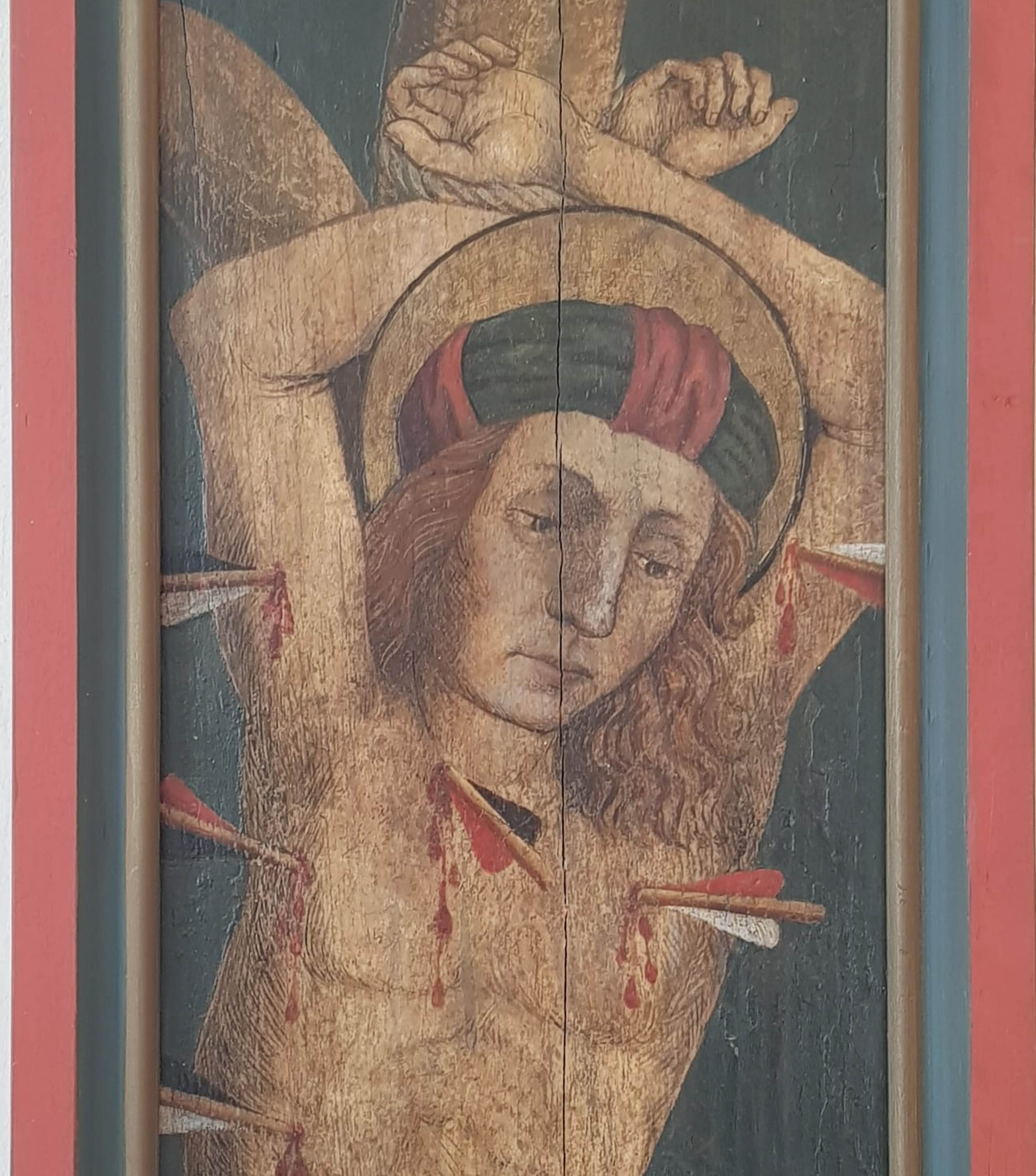 Sebastiano nacque a Milano nel III secolo e fu un soldato sotto il regno dell’imperatore Diocleziano. Quando l’imperatore seppe che Sebastiano, di cui aveva grande stima, era un cristiano, lo fece legare a un palo e colpire con delle frecce. Irene (nome che significa pace), una giovane vedova cristiana, voleva seppellirne la salma, ma Sebastian era ancora vivo e, curato da lei, si riprese. Quindi accusò l’imperatore di perseguitare i cristiani: condannato per questo, fu mandato nel circo e picchiato a morte con dei bastoni. Il suo corpo fu gettato nella Cloaca Maxima: recuperato dalla cristiana Lucina, fu sepolto nelle catacombe sulle quali oggi sorge la Chiesa dei Pellegrini di S. Sebastiano a Roma.