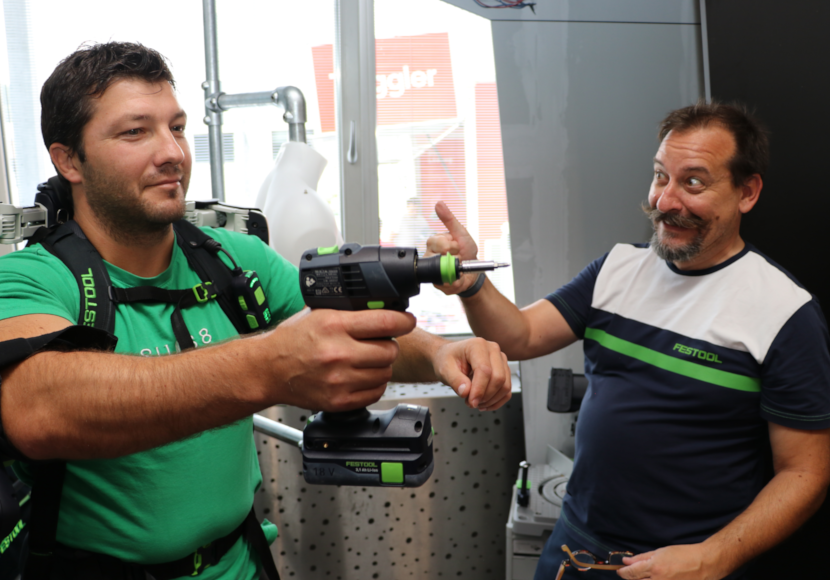 Südtirols Holz- und Metallverarbeiter standen beim Handwerkertag in Bruneck im Mittelpunkt. Mit 21 Unternehmen aus Italien, Deutschland, Österreich, Schweiz und Dänemark bot die Veranstaltung die Gelegenheit, sich bei Grohe über aktuelle Innovationen zu informieren. Wie in einer Aussendung mitgeteilt wird, standen vor allem die Themen Digitalisierung und Robotik im Mittelpunkt. Für besonderes Aufsehen sorgte dabei das Exoskelett „Festool“, das sich Handwerker bei anstrengenden Über-Kopf-Arbeiten anlegen können, um Nacken und Arme kraftsparend zu unterstützen. Angewandt wird die Robotik-Lösung vor allem bei Maler- Tapezier- und Montagearbeiten an Wänden und Decken. Wie ein Rucksack ist „das Skelett“ leicht zu tragen und lässt sich schnell auf eine individuelle Größe einstellen.Â