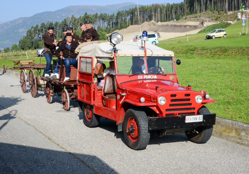 Die prächtige Chronik zum 100-jährigen Bestehen, verfasst von Dr. Johann Passler, überarbeitet vom Ausschuss der FF Percha und grafisch ausgearbeitet von Alyssa Plaickner, wurde passend zum Anlass vorgestellt. In ihren Ansprachen würdigten die Ehrengäste (unter ihnen Landesrat Arnold Schuler, Bürgermeister Martin Schneider, Präsident-Stellvertreter des Landesverbandes Peter Hellweger und Abschnittsinspektor Meinhard Schneider) nicht nur das Wirken der FF Percha in den vergangenen 100 Jahren, sondern zeigten sich auch beeindruckt von der modernen Ausrüstung und dem neuen Einsatzfahrzeug.