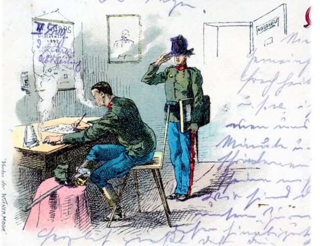 La mostra presenta una ricca collezione di „cartoline militari ai tempi della Duplice Monarchia – 1871 / 1914“ ed è allestita presso ilMuseo postale e telegrafico della Mitteleuropa,  situato in un’ala dello storico Palazzo delle Poste di Trieste