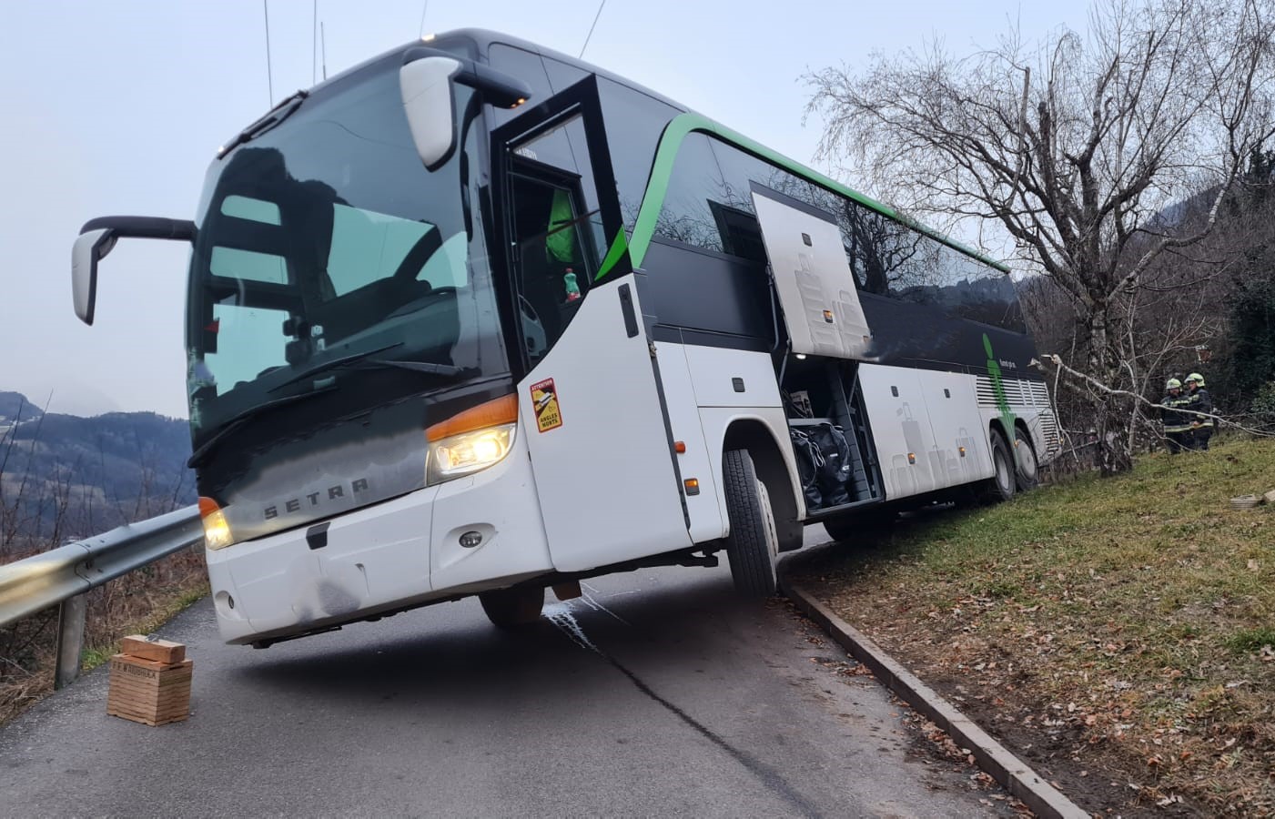Trotz der beengten Verhältnisse kam es zu keinem Schaden am Bus während des Manövers. Der erfahrene Busfahrer schaffte es, das Fahrzeug mit Unterstützung der örtlichen Feuerwehren aus Barbian und Waidbruck eigenständig aus dieser misslichen Lage zu befreien.