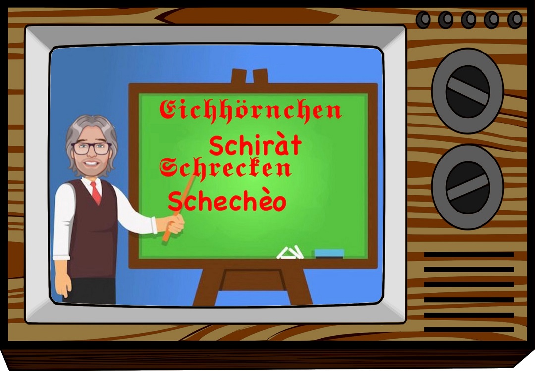 La lingua tedesca insomma ha contribuito non poco alla composizione di parole del dialetto della provincia di Trento che sono ancora in uso e che difficilmente potranno essere rimosse almeno fino a quando abiteremo la nostra Heimat, la nostra casa, il nostro territorio, con le nostre… gefühle, le nostre emozioni… “schiràt”, ad esempio, scoiattolo, deriva da “eichhörnchen”, parola modificata dal tedesco al dialetto trentino rispettando i suoni così come venivano adottati nei vari contesti… vara lì quel schiràt come ch’él zuga… guarda  quello scoiattolo come gioca… “fietetàr”, (foraggiare), deriva da “füttern”; bigneria che i féβa vergót per fietetàr… bisognrebbe che facessero qualcosa per foraggiare…