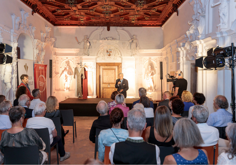 Der geschichtsträchtige Rittersaal der Trostburg war bis auf den letzten Platz besetzt. Unter den Anwesenden befanden sich zahlreiche illustre Persönlichkeiten aus Politik und Kultur: Landeshauptmann-Stellvertreterin Rosmarie Pamer, Euregio-Generalsekretär Christoph von Ach und Waidbrucks Bürgermeister Philipp Kerschbaumer zählten ebenso zu den Gästen wie Walter Landi, Stadtrat von Leifers, und Claudia Plaikner, Präsidentin des Südtiroler Heimatpflegeverbandes, berichtet Philipp Genetti, der Präsident der Meraner Festspiele.