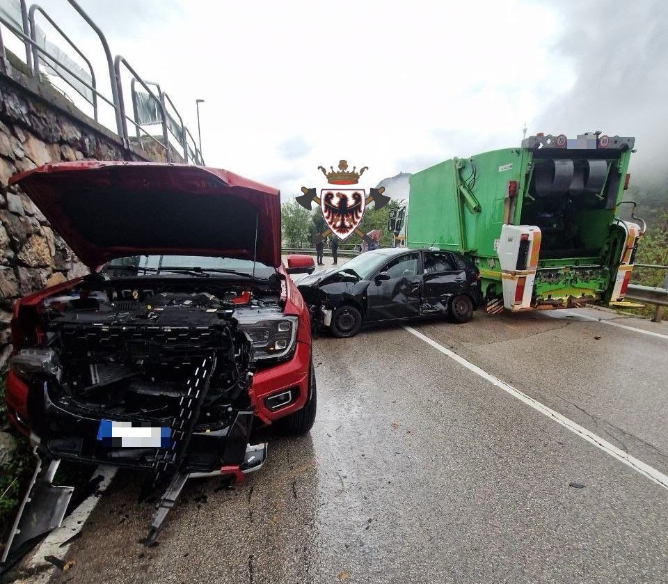 Un incidente stradale che ha coinvolto un mezzo pesante e due automobili si è verificato questa mattina attorno alle 07.20 lungo la strada statale 46 del Pasubio.