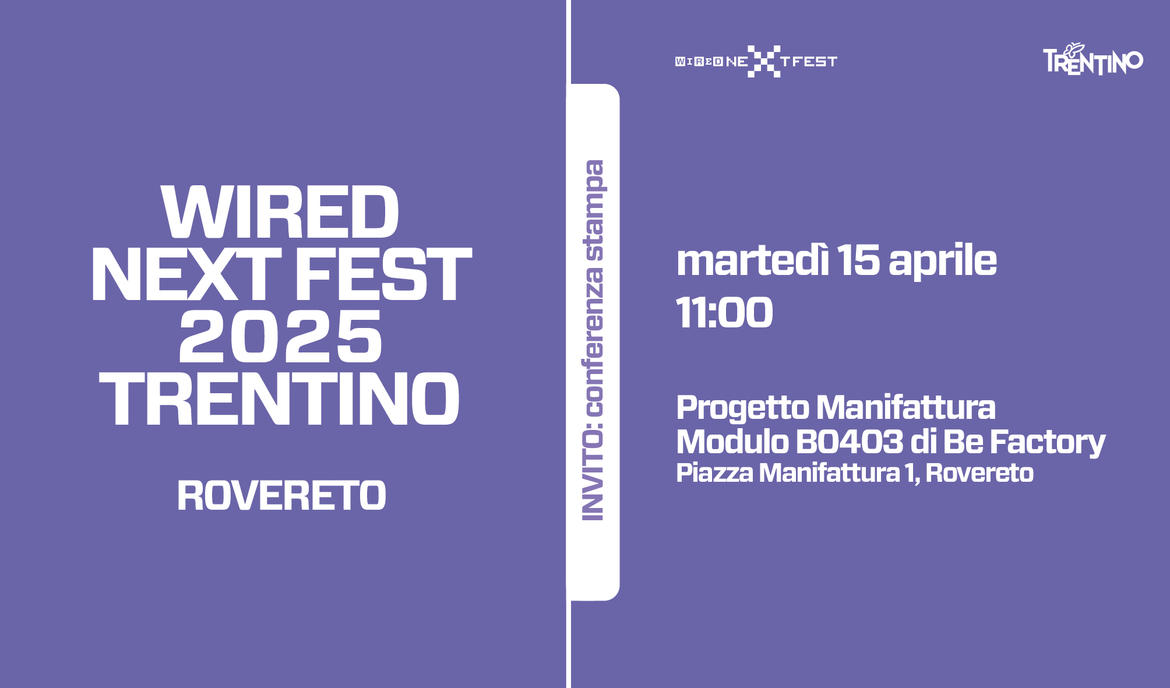 Per il terzo anno consecutivo WIRED Next Fest, il più grande festival a partecipazione gratuita dedicato all’innovazione e alle nuove tecnologie, si prepara a tornare a Rovereto.