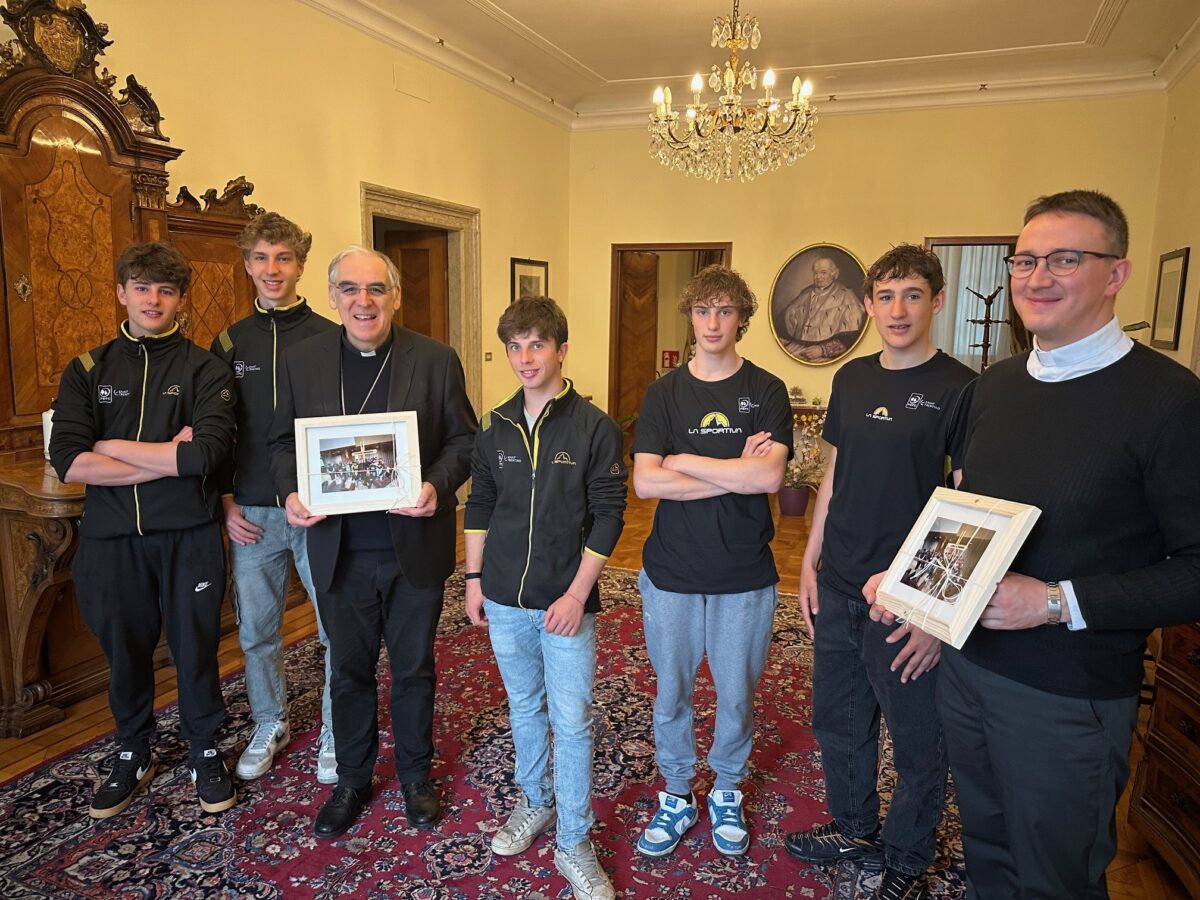 Nella loro visita i ragazzi hanno donato all’Arcivescovo (“sono io che devo sempre ringraziare voi!”) e a don Mattia Vanzo (coordinatore dell’iniziativa) un quadro con la foto di gruppo scattata a Roma sotto la croce e incorniciata nel legno da loro intagliato. Il dono si arricchisce di due biglietti fitti dei pensieri con cui ragazze e ragazzi hanno “fissato” la loro esperienza.