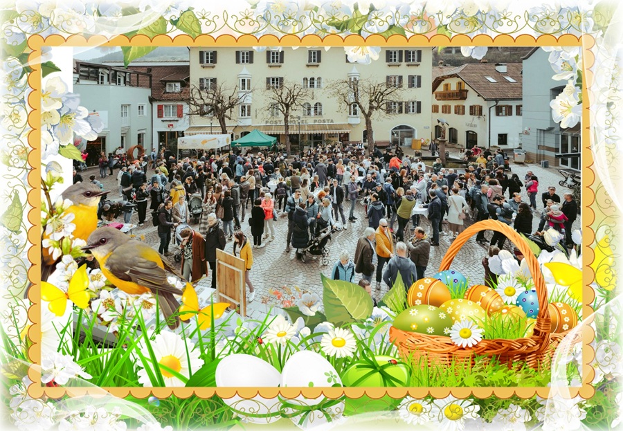 La banda musicale di Chiusa si occupa dell’intrattenimento musicale dalle ore 10.00 fino le ore 13.00. I coniglietti di Pasqua girano per la città e distribuiscono le uova colorate per la tradizione del „Pecken“: Battendo le uova uno contro l’altro, si mette in evidenza il vincitore. Un grande divertimento per tutti, grandi e piccoli!