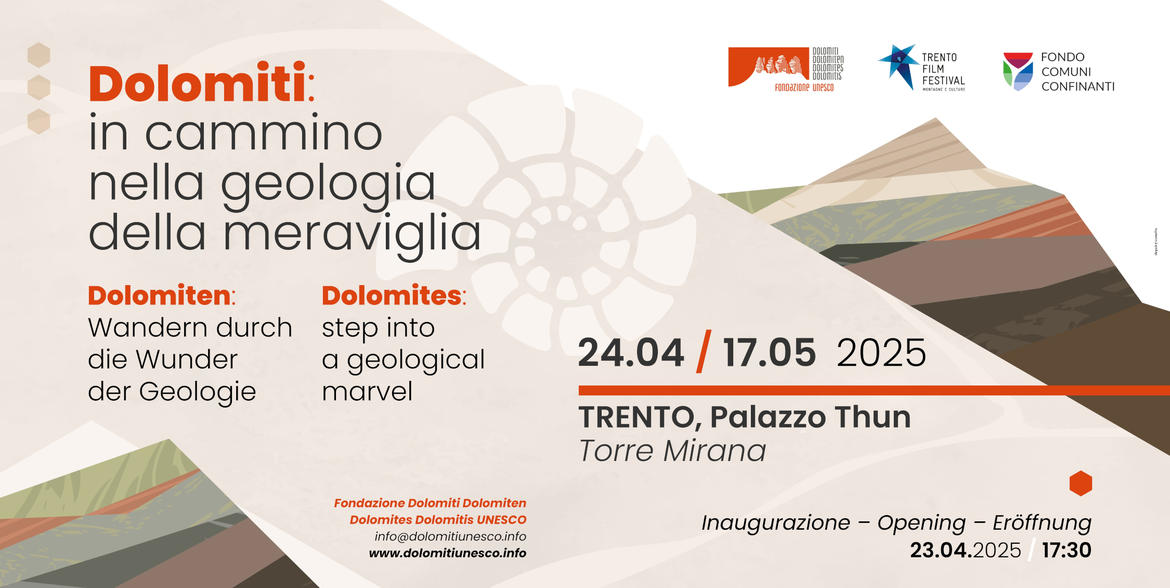 Il 23 aprile alle 17.30, a Palazzo Thun, verrà inaugurata, nell’ambito della 73ma edizione del Trento Film Festival, la mostra «Dolomiti: in cammino nella geologia della meraviglia». Si tratta di un progetto della Fondazione Dolomiti UNESCO, realizzato da Biosphaera SCS con il supporto scientifico della Rete funzionale del Patrimonio Geologico coordinata dalla Provincia autonoma di Trento che, tramite l’Assessore all’agricoltura, promozione dei prodotti trentini, ambiente, difesa idrogeologica e enti locali e referente per il Patrimonio Mondiale, ha espresso il proprio plauso all’iniziativa.