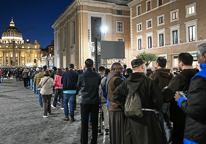 Um 7.00 Uhr begannen die Sicherheitsleute schließlich damit, die Gläubigen in das Gotteshaus vorzulassen. Dort liegt vor dem Hauptaltar der Pontifex, der am Ostermontag im Alter von 88 Jahren gestorben war. Noch bis Freitagabend ist Franziskus in dem offenen Sarg aufgebahrt, ehe dieser verschlossen wird für die Trauerfeier und Beisetzung am Samstag.