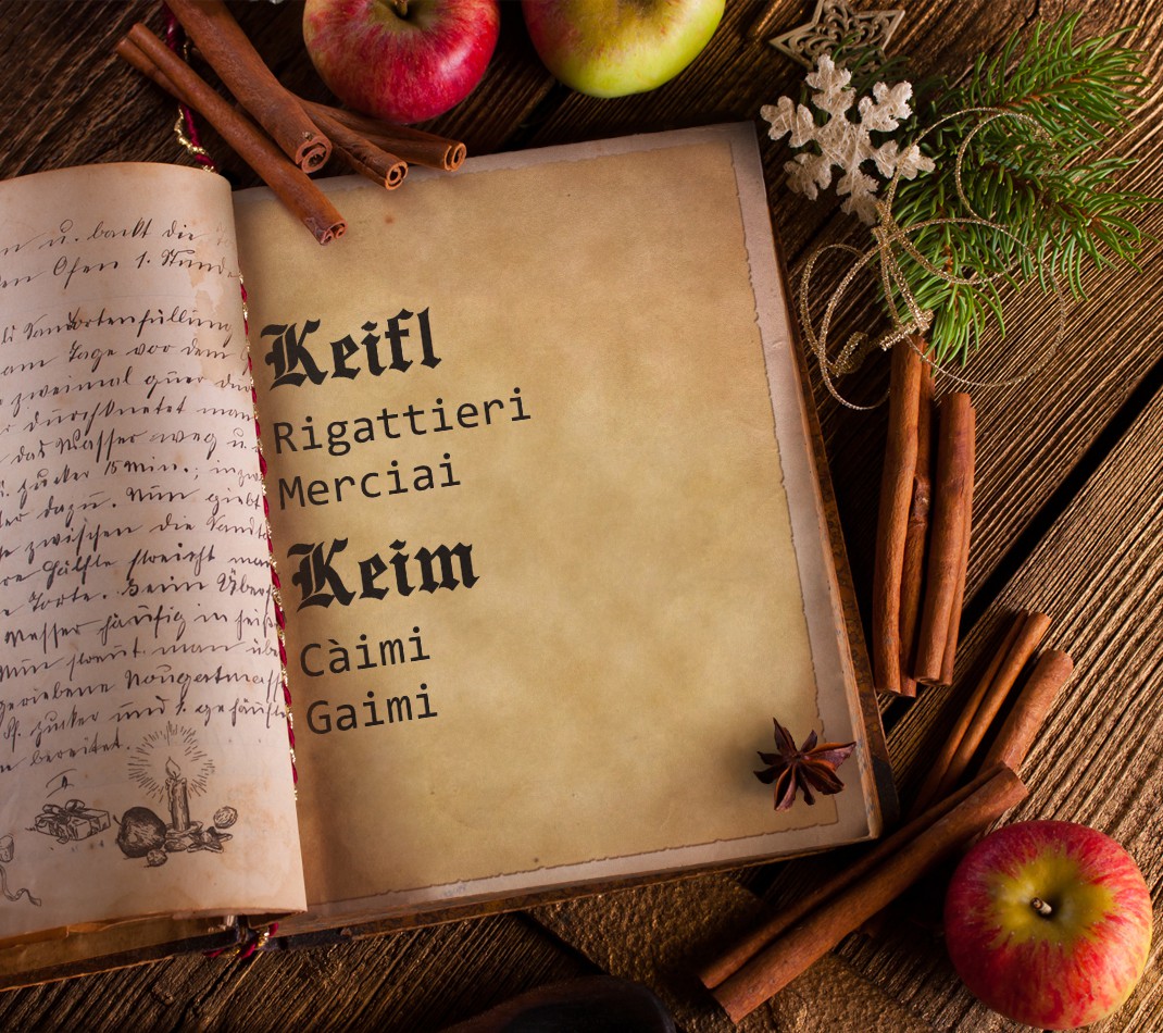 Come si è già sottolineato tante volte, l’arzigogolo tolomeico ha spesso spaziato in galassie linguistiche che neanche la fisica quantistica potrebbe supportare. Keifl, ad esempio, un cognome presente soprattutto in Eisacktal, Tolomei lo fece fare provenire da “Käufel”, rigattiere o da “Kaufen”, comprare, così lo italianizzò in Merciai o Rigattieri…Con Keim utilizzò un metodo anche questo piuttosto artificioso e lo ricavò da un probabile nome personale (Gaimfrid o Gaimbald) per trasformarlo in Càimi o Gaimi. Ma da ricordare che il cognome Keim è legato all’artigiano e ricercatore A.W. Keim, l’inventore dei colori al silicato. Conosciuto già nel Medioevo sotto il nome di “Liquor silicium”, mancavano però le tecnologie per una buona produzione ed applicazione. Alla base della sua scoperta brevettata nel lontano 1878, c’era la miscelazione di silicato liquido di potassio (acqua di vetro) con pigmenti colorati inorganici. Il risultato: dei colori ai silicati che per qualità, durata, protezione e luminosità non trova simili nel suo genere. Nel 1768 Johann Wolfgang von Goethe intraprese i primi esperimenti con il silicato di potassio. Nell’ottavo libro della sua opera “Poesia e verità” scriveva: “Quello che mi ha tenuto occupato per la maggior parte del tempo è il cosiddetto “Liquor Silicium”’ che si ottiene sciogliendo selce quarzifera pura con una parte appropriata di alcali. Si ottiene così una massa vetrificata trasparente che si scioglie all’aria formando un liquido chiaro…”.