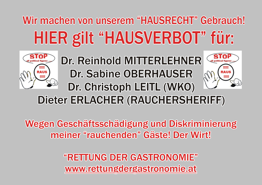 Rauchverbot: Wirte erteilen Ministern Mitterlehner und Oberhauser Hausverbot