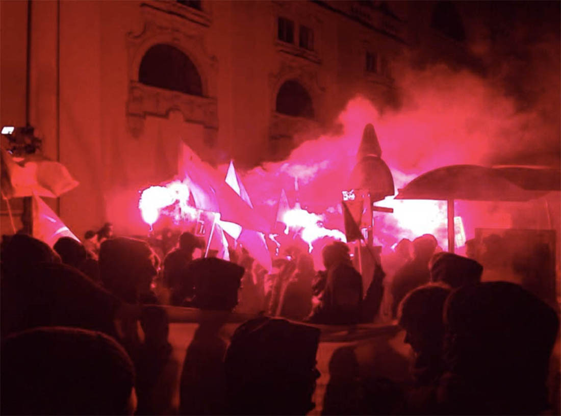 Die Landespolizeidirektion Wien hat im Auftrag des Verfassungsschutzes ein Ermittlungsverfahren gegen das linksextreme NOWKR-Bündnis eingeleitet und Anzeige wegen §278b StGB Terroristische Vereinigung erstattet. Die Staatsanwaltschaft prüft momentan den Sachverhalt.