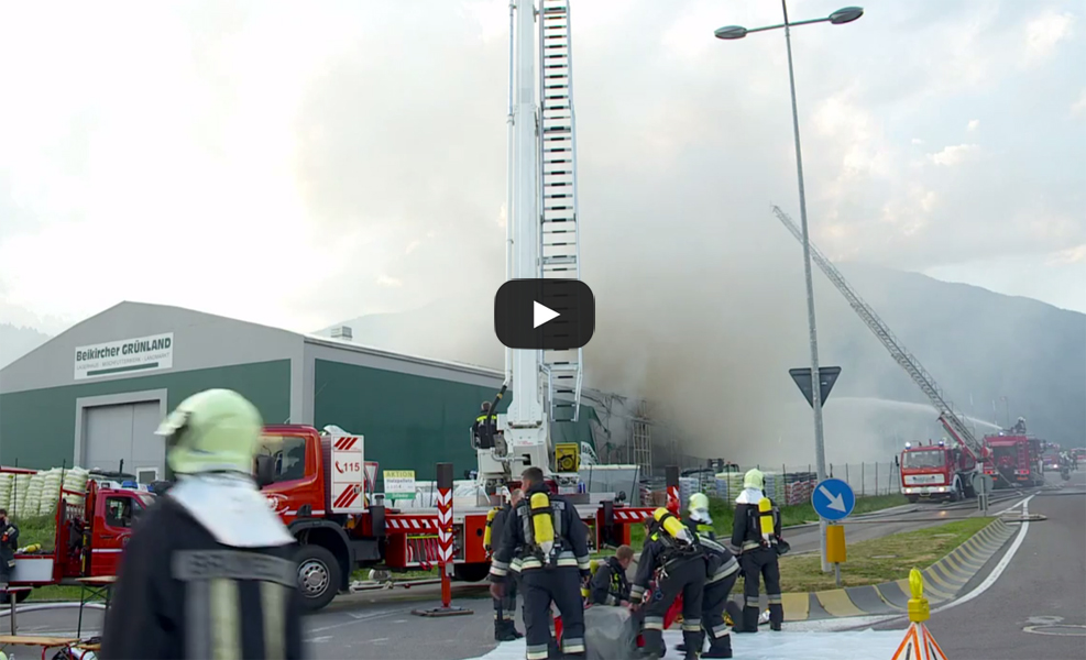 Beikircher Grünland in Bruneck, Industriezone Nord, ein Großbrand aus. Schnell wurde klar, dass bei dem Brand ein Großeinsatz nötig war -