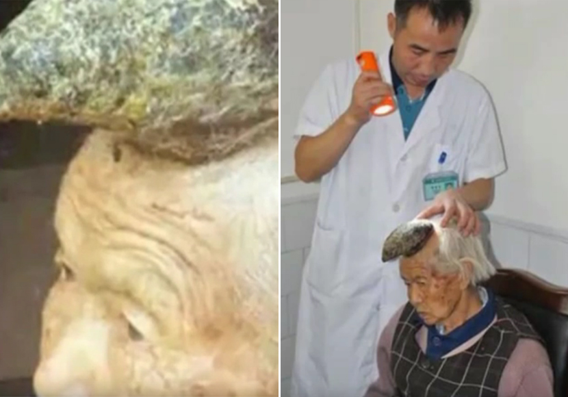 Die 87-Jährige leidet an einem Tumor, „cornu cutaneum“, der solche Fehlbildungen mit sich ziehen kann.