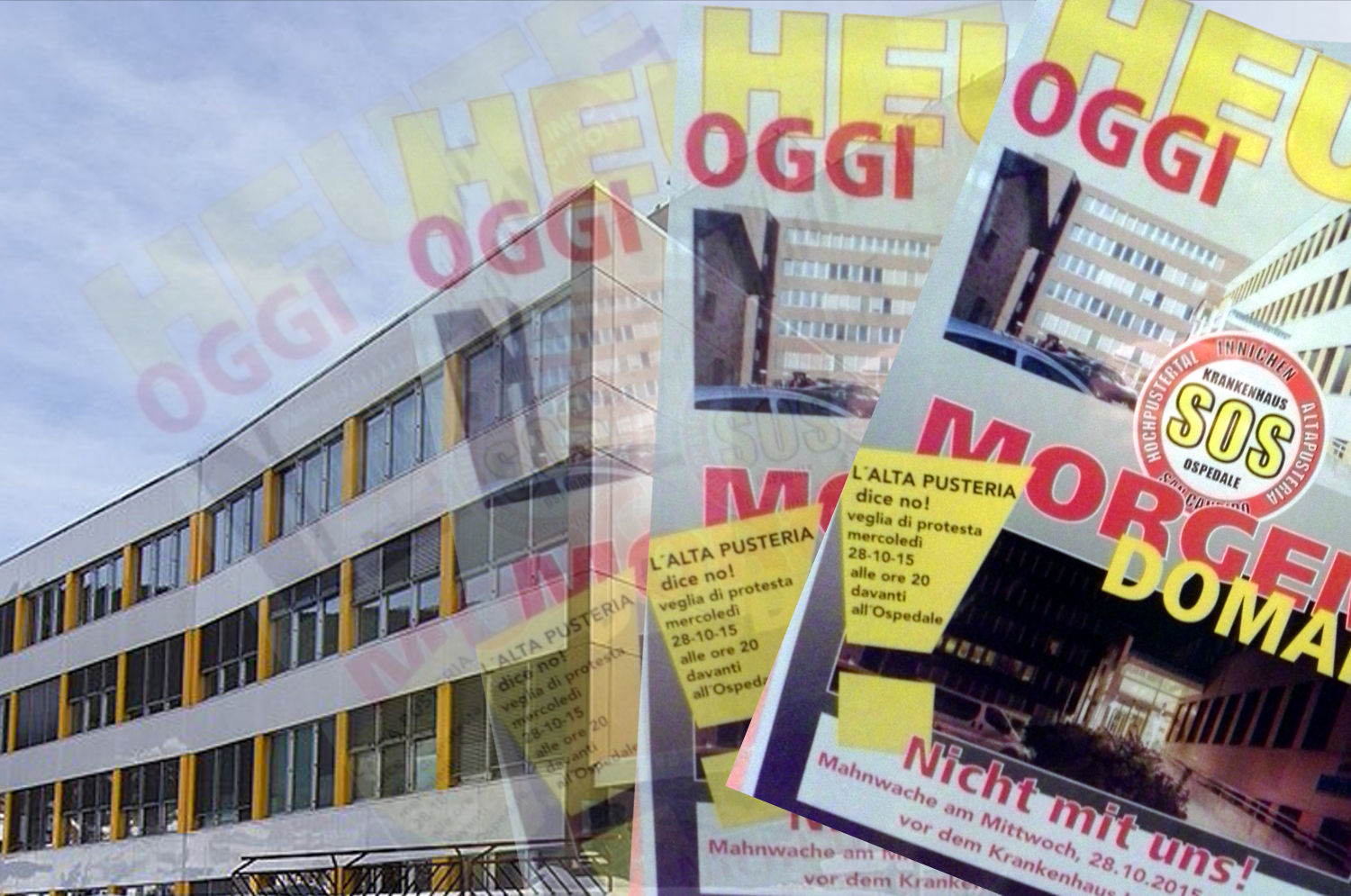 Unter diesem Thema steht eine geplante Mahnwache am Krankenhaus Innichen. Heute wird die Bevölkerung von der Initiativgruppe Pro Krankenhaus über die derzeitige Lage informiert.