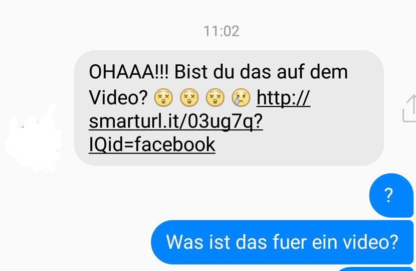 „OHAAA!!!! Bist du das auf dem Video?“ oder ähnlich lauten einige Nachrichten, die in diesen Tagen auf Facebook die Runde machen. Daraufhin wird ein scheinbarer Video-Link verschickt, der allerdings zu keinem Video führt.