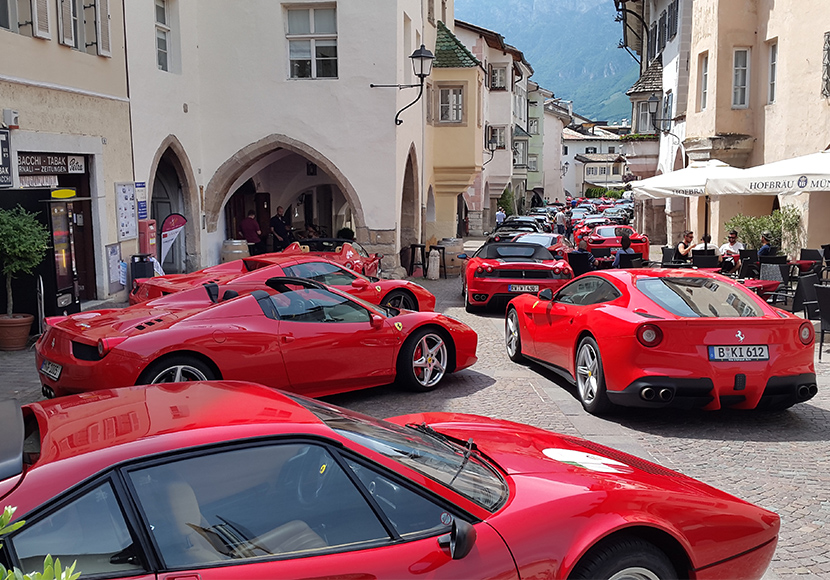 Dem einen oder anderen Pusterer werden die heißen Schlitten wohl am Freitag begegnen. Auf dem Programm steht nämlich eine Ausfahrt in die Dolomiten und ein Mittagessen im Toblacher Romantikhotel Santer. Am Samstag können die Ferraris noch auf dem Thermenplatz in Meran angeschaut werden.