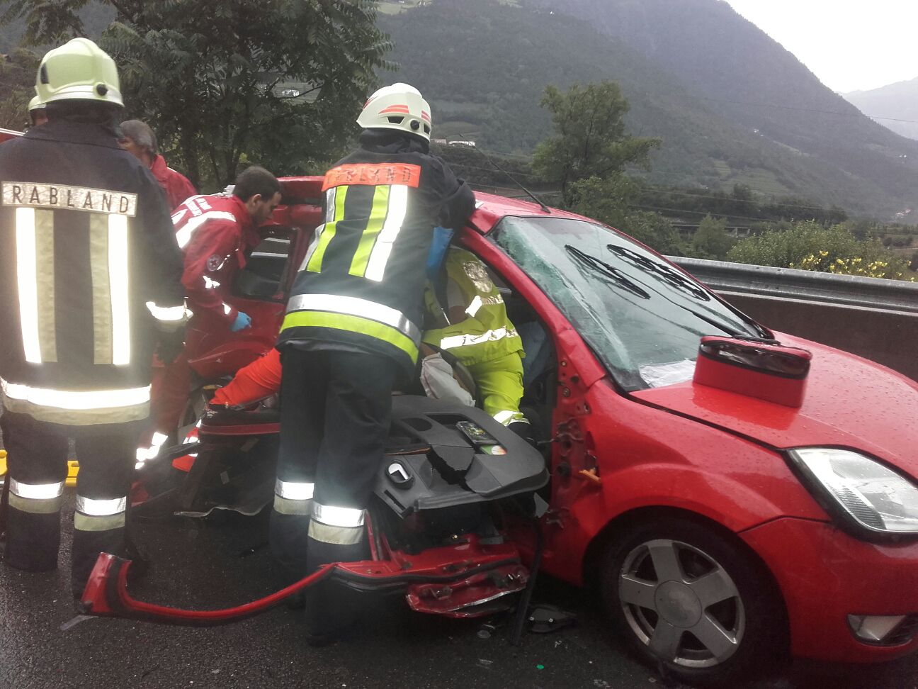 Zwei Autos sind nach dem zweiten Tunnel zusammenstoßen. Ein Schwerverletzte musste aus dem Fahrzeug befreit werden. Sie wurde ins Krankenhaus von Bozen eingeliefert.