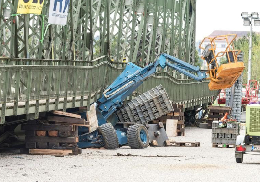 Abgebauter Teil der Eisenbahnbrücke in Linz abgestürzt