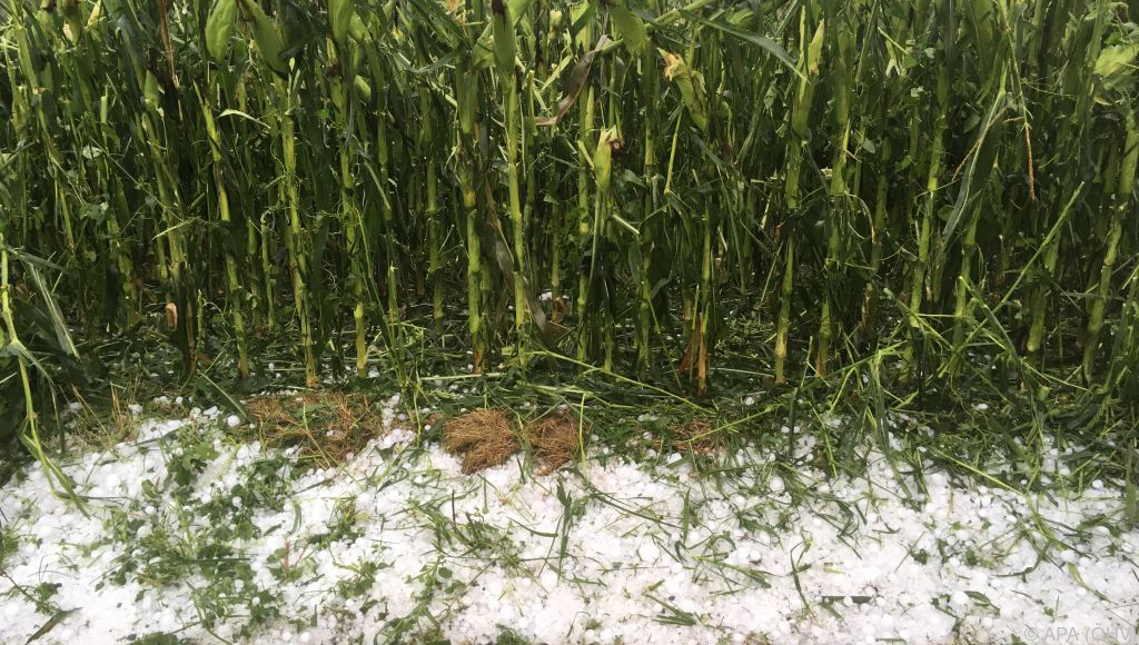 Neben Sturm- und Vermurungs-Schäden verursachten bis zu Hühnerei-große Hagelschloßen am Montagnachmittag erhebliche Schäden an landwirtschaftlichen Kulturen. Insbesondere die Bezirke Leibnitz, Hartberg-Fürstenfeld und Deutschlandsberg waren betroffen. Auf einer Fläche von rund 6.000 Hektar entstanden laut Sachverständigen in der Landwirtschaft Schäden von 2,1 Millionen Euro. Betroffene Kulturen waren Mais, Kürbis, Soja, Grünland, Getreide und Weingärten. Auch Glashäuser wurden stark in Mitleidenschaft gezogen.
