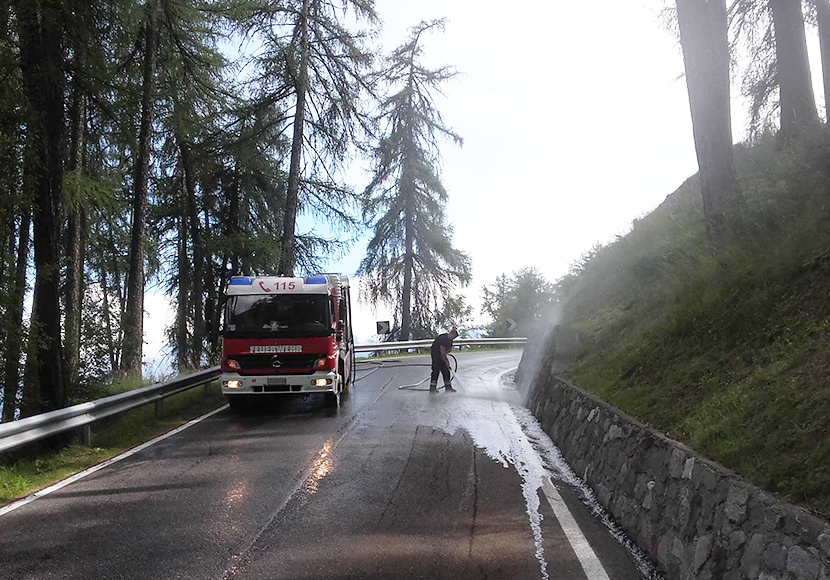 „Da es schwierig gewesen wäre eine Zubringerleitung aufzubauen musste mit dem TLF mehrere Male Wasser beim Hydranten eines nahe gelegen Hofes geholt werden“, sagt die Feuerwehr. Der Einsatz dauerte von 13.00 bis 16.30 Uhr.