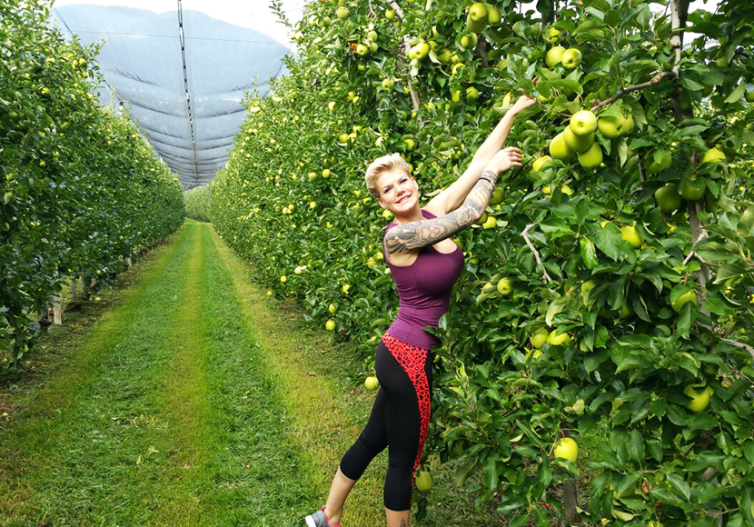 „Apfelplantage mitten in Südtirol“, schreibt Müller auf ihrem Facebook-Profil. „Da ist die Welt noch in Ordnung. Hier möchte ich am liebsten bleiben. Vielen Dank für die tolle Gastfreundschaft“. Auch den Bauer freute Müllers Besuch sichtlich.