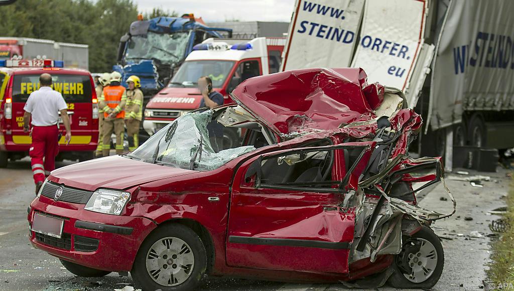 Insgesamt waren in den Unfall vier Lastkraftwagen und fünf Pkw verwickelt. Zu der Identität der Opfer gab es vorerst keine Angaben. Das Unglück hatte sich gegen 8.00 Uhr bei der Ausfahrt Flughafen-Feldkirchen in Fahrtrichtung Westen ereignet.