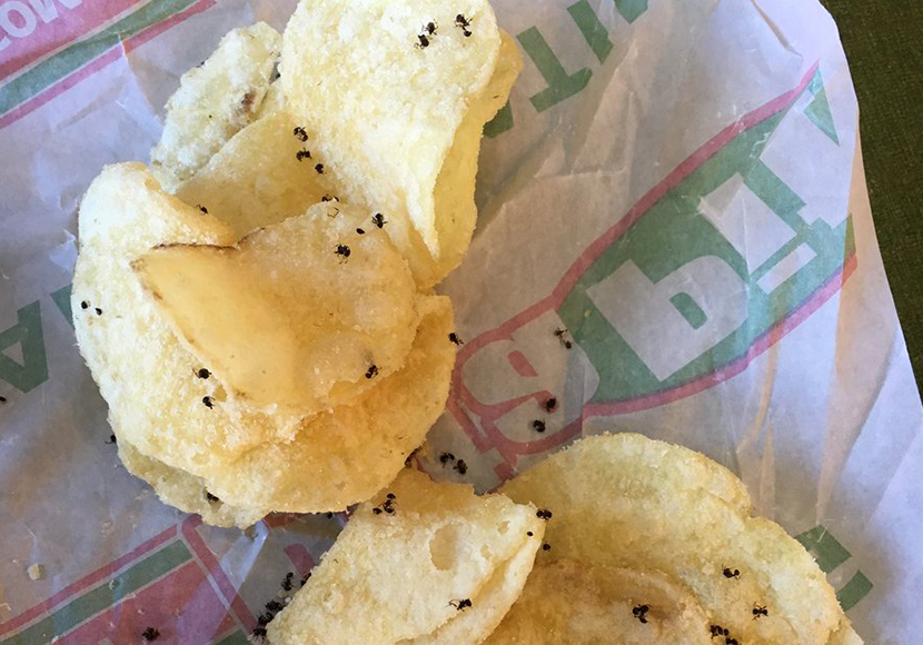 „Geh niemals zu Pita Pit“, schreibt die Jugendliche auf Twitter. „Oh mein Gott, überall tote Ameisen auf meinen Chips und ich dachte, dass es ein Gewürz wäre und habe sie gegessen“.