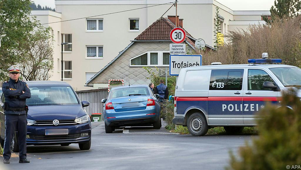 Am Nachmittag führte der Mann die Ermittler nach Trofaiach, wo er die Leichen auf einer verwachsenen Wiese in einem Gebüsch mitten im Siedlungsgebiet abgelegt hatte. Der Fundort ist keine 150 Meter von seiner früheren Wohnadresse entfernt. Die „Kleine Zeitung“ berichtete, dass die Toten in einem Koffer versteckt gewesen waren. „Zur genauen Auffindungssituation geben wir aus kriminaltaktischen Gründen keine Auskunft“, sagte Polizeisprecher Patrick Maierhofer. Die Spurensicherung war in der steirischen Gemeinde am Abend noch an Ort und Stelle, der Fundort weiträumig abgesperrt.