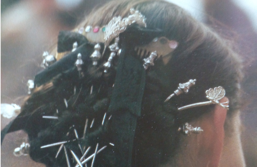 Esistono poi ornamenti aggiuntivi da infilare nei capelli e ognuno di essi ha un ben preciso significato che si tramanda da generazioni.