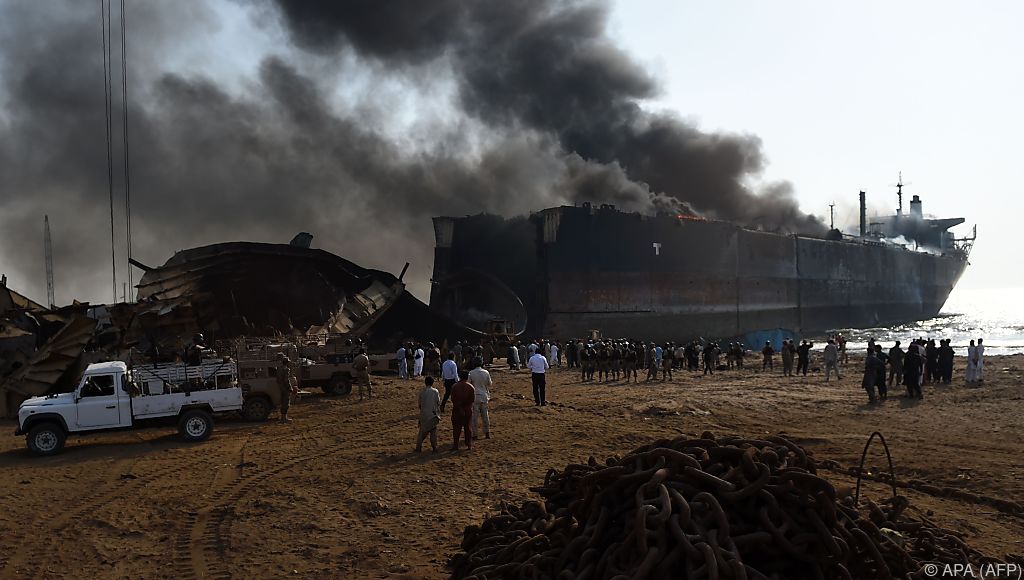Das Feuer sei immer noch nicht gelöscht und es seien weiter Explosionen zu hören. Die Zahl der Opfer werde vermutlich weiter steigen. Dutzende Menschen könnten noch in dem Wrack gefangen sein. Fernsehbilder zeigten eine dichte, schwarze Rauchwolke über der Anlage im Ort Gadani. Sie ist einer der größten Schiffsfriedhöfe der Welt.