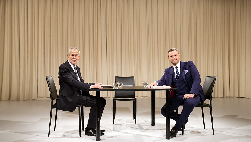 Daneben war einmal mehr der brutale Social-Media-Wahlkampf Thema. Beide Kandidaten forderten Zurückhaltung und Toleranz im Ton. „Man schadet nicht dem anderen Kandidaten, man schadet in Wirklichkeit dem Amt und Österreich“, sagte Hofer, der auch die Anti-Öxit-Kampagne des Industriellen Hans Peter Haselsteiner thematisierte. Hofer kritisierte, dass sich Haselsteiner zuletzt über seine Behinderung lustig gemacht habe. „Das tut weh. Ich hab meinen Weg gemacht trotz meinem Stock, und ich werde ihn weitergehen“, so Hofer. „Ich bedaure den Ausdruck mit dem Stock, aber ich war nicht dabei“, erwiderte Van der Bellen.