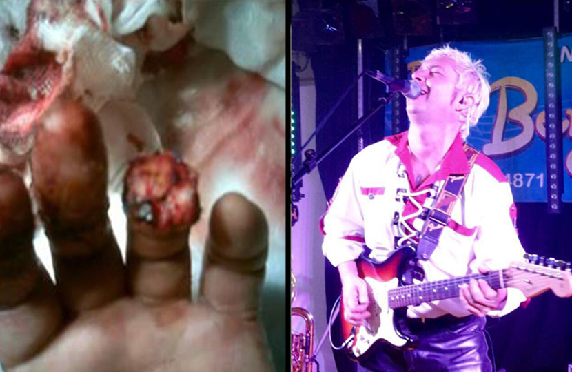 Alles in allem war es ein langer und steiniger Weg. Und mittlerweile bin ich soweit, dass es viele Leute nicht einmal mehr merken, dass ich eine schwere Verletzung an der Hand hatte. Aber ich habe einfach alles probiert und mir sogar von einem plastischen Chirurg zeigen lassen, was es für Möglichkeiten gibt, um die Handbewegung zu verbessern. Dieser hat mir einen Finger gemacht, was nicht gleich funktioniert hat: dieser ist mir ständig an der Gitarre angestoßen und hat Geräusche gemacht.