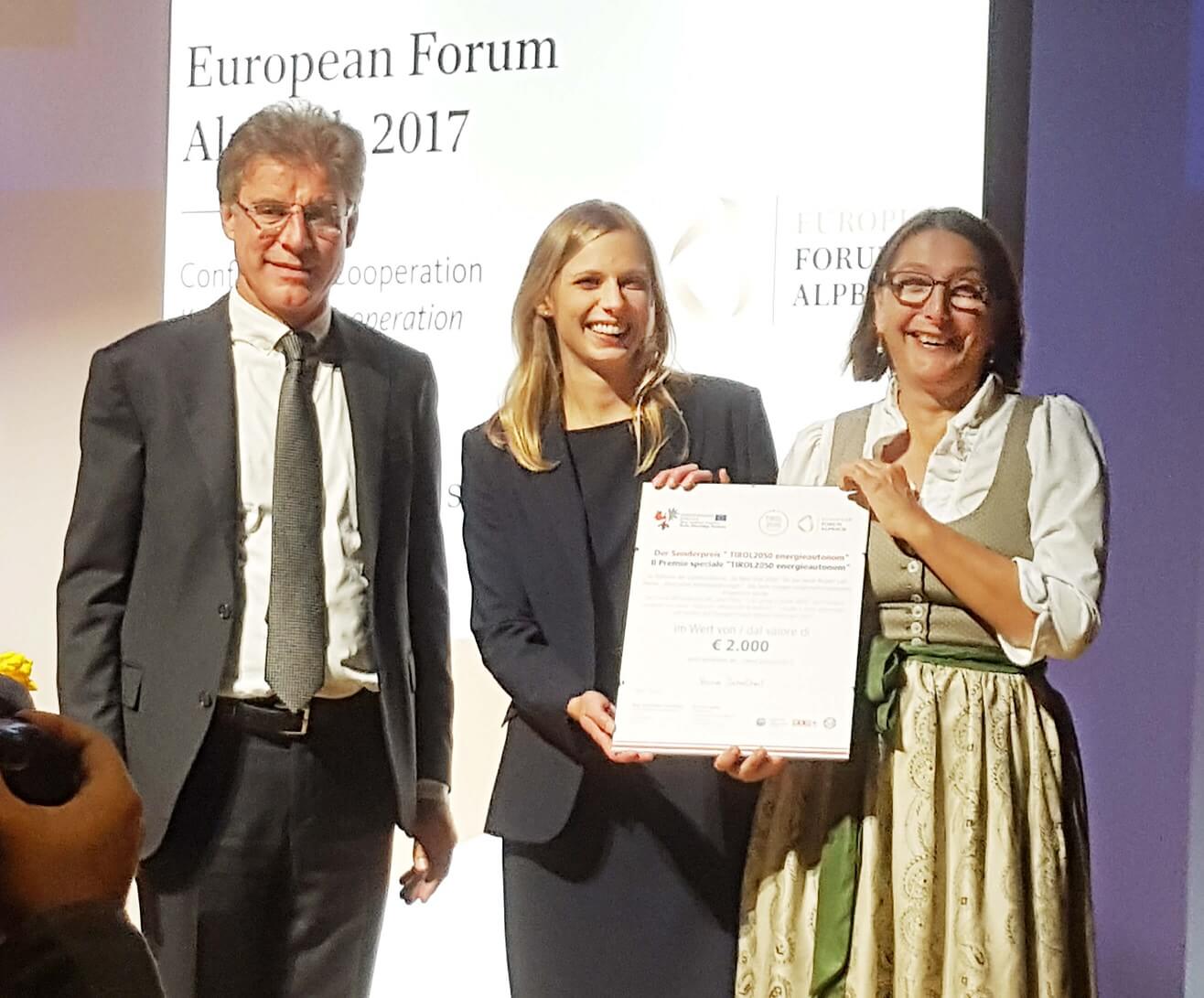 Erstmals verlieh die Jury unter der Leitung des Präsidenten der Freien Universität Bozen, Konrad Bergmeister, den Sonderpreis Tirol 2050 Energieautonom.