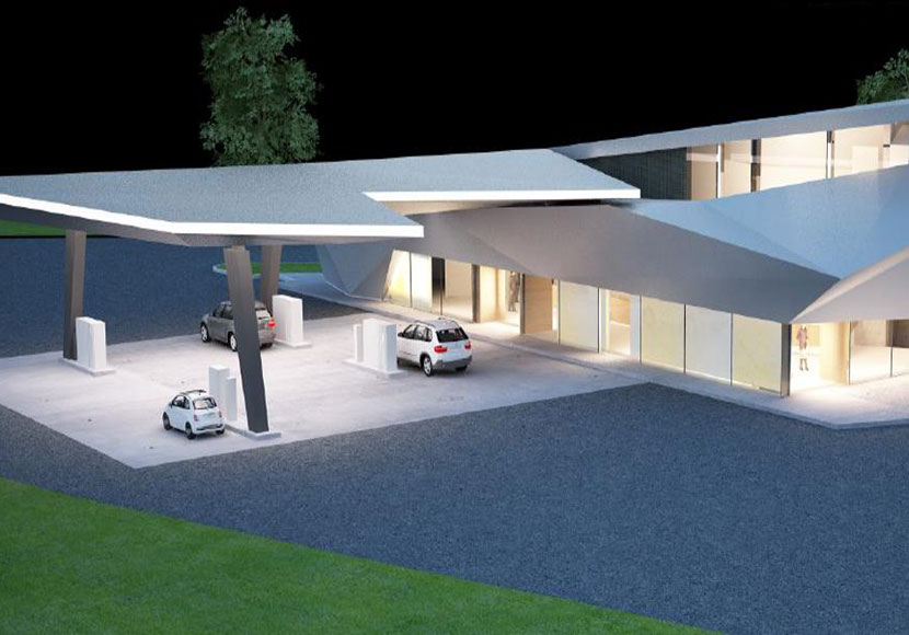 Die Serviceräume für Technik, Küche, Lager usw. werden erneuert, der Shopbereich und die Toiletten modernisiert und die Überdachung für die Zapfsäulen neu gebaut. Das Gebäude, das ein Verbindungselement zwischen der alpinen Landschaft und der Autobahninfrastruktur darstellen soll, wird von außen mit einer Aluminiumbeschichtung eingehüllt. Diese setzt sich an den senkrechten Wänden und am Dach fort und gibt dem Bau ein modernes und innovatives Erscheinungsbild. Die neue Raststätte hat eine Oberfläche von etwa 400m2 im Erdgeschoss und 160m2 im ersten Stock und wird dank großer Glasfronten mit dem Außenbereich verschmelzen. Gleichzeitig wird die Energieeffizienz garantiert. Die Raststätte soll als KlimaHaus A zertifiziert werden.