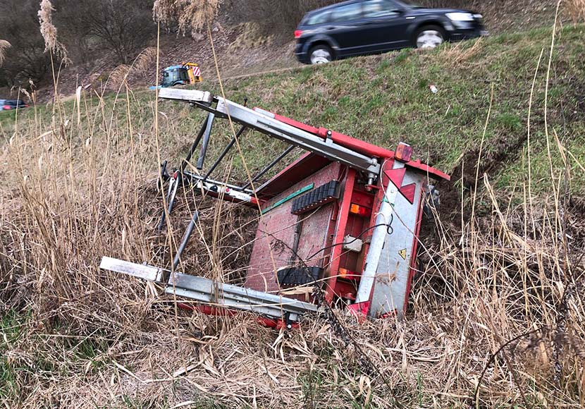 Unterland: Landwirt stürzt mit Hebebühne in Graben
