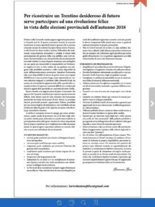 Con la volontà di dare un contributo in questa direzione presento questo documento – conclude Gios – che si pone come possibile punto di partenza per . . . una rivoluzione felice per la nostra Terra. Contributi, suggerimenti, critiche costruttive sono gradite.