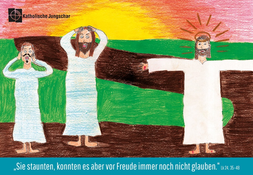Dieses Jahr hatte die Katholische Jungschar Südtirols die Ehre, das Motiv zu gestalten. Carmen, Magdalena und Maddalena aus St. Christina in Gröden sind die Künstlerinnen des heurigen Ostergrußkärtchens.