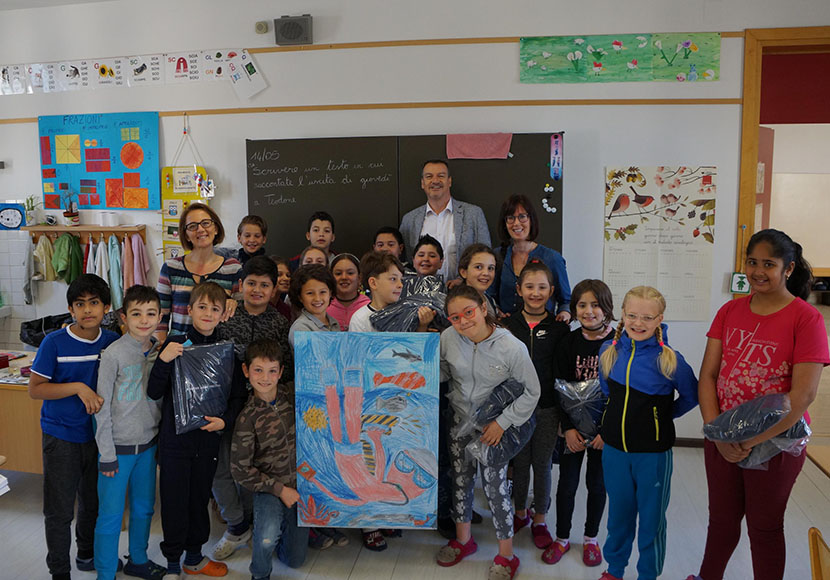 Kürzlich überreichten Petra Augschöll von der Stadtwerke Brixen AG sowie Vizeobmann Markus Knapp und Astrid Früh von der Brixen Tourismus Genossenschaft allen Schülern als Dankeschön für Ihre Teilnahme ein Badetuch. Als große Überraschung wurde ein Bild der Klasse, welches die Jury am meisten beeindruckt hat, als Großformat ausgedruckt und an die jeweiligen Künstler überreicht.