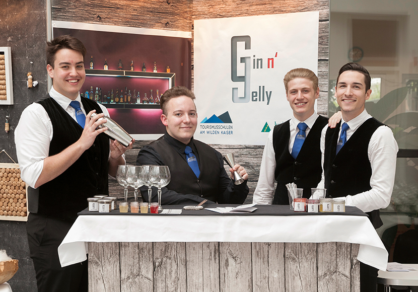 Die Schüler der Tourismusschulen Am Wilden Kaiser konnten mit ihrem Projekt „Gin n՚ Jelly“ am meisten überzeugen und dürfen Tirol beim Bundeswettbewerb am 25.06.2018 in Wien vertreten. Unter dem Motto „Erleben Sie Gin neu!“ hat das Projektteam zwei Produkttypen entwickelt: Gelees mit der Hauptspirituose Gin, die sie mit verschiedenen Geschmacksrichtungen, wie Veilchen, Himbeeren und Gin Tonic, verfeinern. Und Botanicals aus verschiedenen Gewürzen, Kräutern und Früchten zum Aromatisieren von Gin. Platz zwei belegte die BHAK Imst mit ihrer Junior Company „Klee(b)blatt“, die individuell gestaltete und handgefertigte Produkte wie Taschen, Jutebeutel und Kugelschreiber herstellt. Platz drei ging an die BHAK Reutte mit „D’Außaferner“, die mit ihren einzigartig designten T-Shirts die Natur in den Vordergrund stellen und nachhaltig wirtschaften wollen.