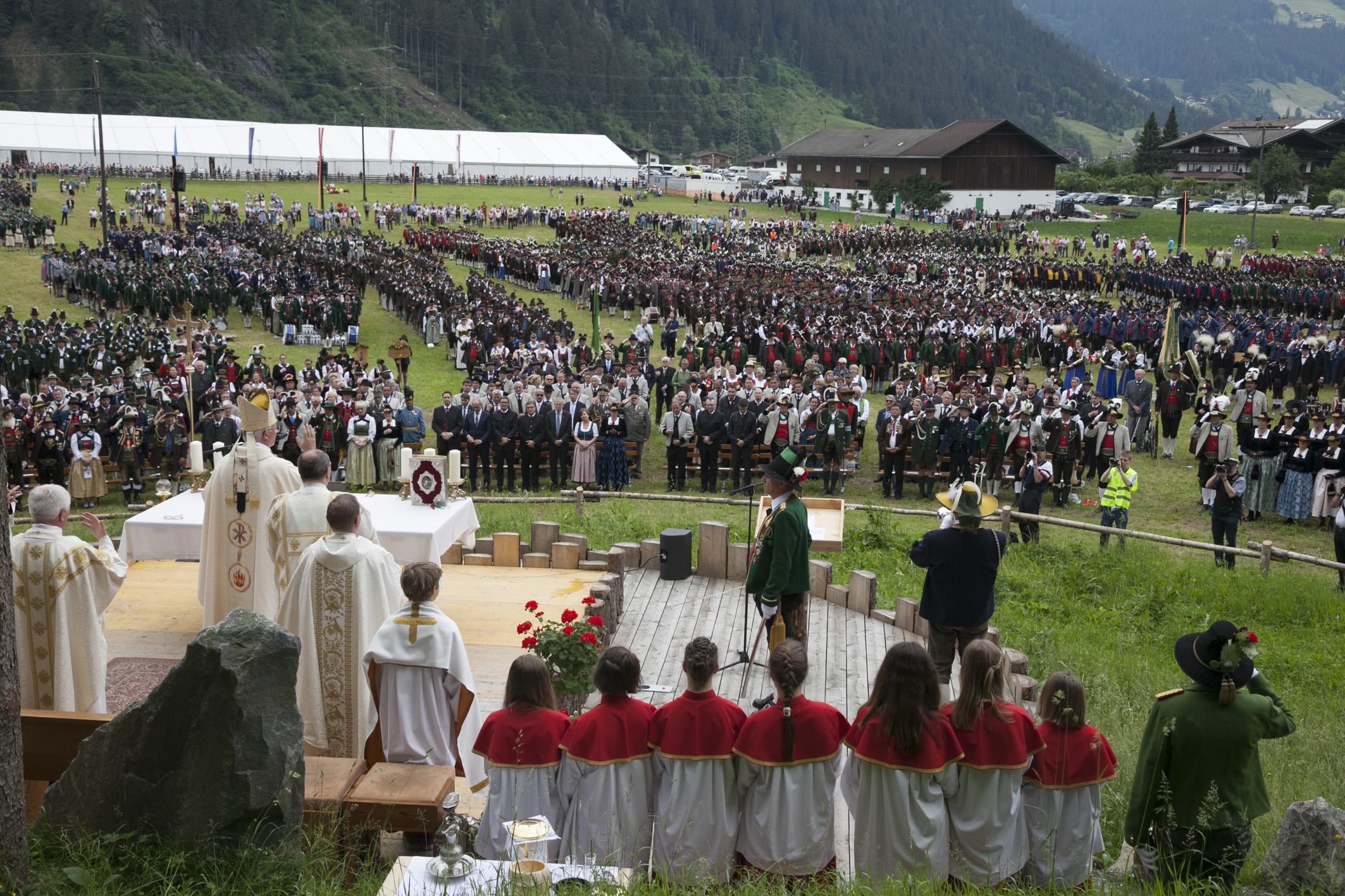 (Südtirol) und Val de Sol/Rhendena (Welschtirol) beeindruckten mit exakten Ehrensalven. Salzburgs Erzbischof S.E. Franz Lackner, zu dessen Erzbistum zählt bekanntlich auch das Tiroler Unterland, feierte mit dem Pfarrer der Marktgemeinde Mayrhofen Jürgen Gradwohl eine berührende Feldmesse. In seiner Predigt hielt er fest: