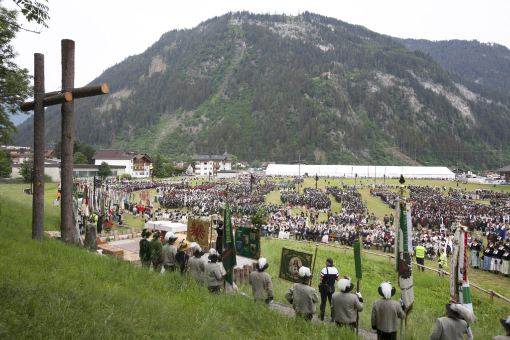 (Südtirol) und Val de Sol/Rhendena (Welschtirol) beeindruckten mit exakten Ehrensalven. Salzburgs Erzbischof S.E. Franz Lackner, zu dessen Erzbistum zählt bekanntlich auch das Tiroler Unterland, feierte mit dem Pfarrer der Marktgemeinde Mayrhofen Jürgen Gradwohl eine berührende Feldmesse. In seiner Predigt hielt er fest: