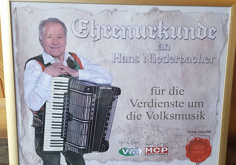 Doch damit nicht genug: Hans Niederbacher, der Vater der Geschwister Niederbacher, erhielt noch am selben Abend eine Auszeichnung um seine Verdienste für die Volksmusik. Ein echter Preisregen also für die Pusterer, die immer hart für ihre musikalischen Ziele gearbeitet haben und nun ihre Früchte ernten dürfen.