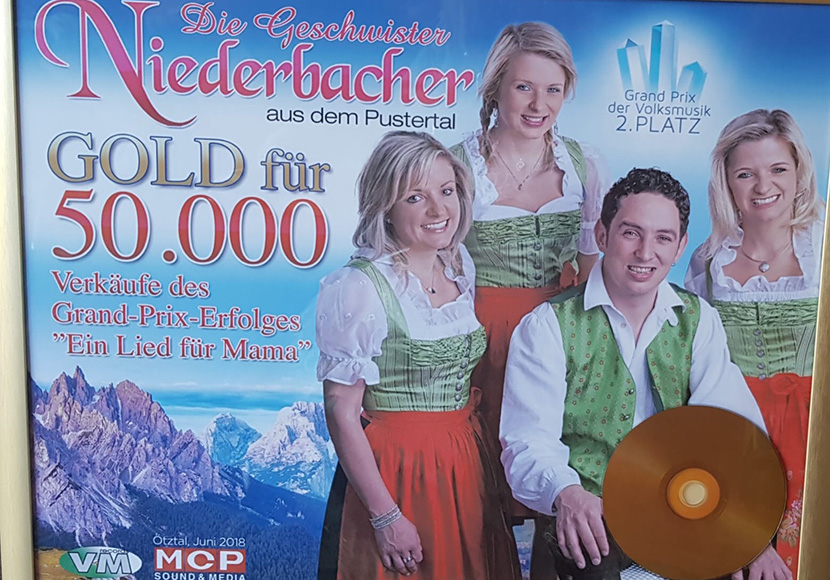 Breitenberger, an Dr. Hans Jöchler,sowie an unserer Plattenfirma VM und MCP Sound & Media. Und ein großes Dankeschön an all unserer Freunde und Fans die uns über die ganzen Jahre unterstützt haben“, freuen sich die Geschwister Niederbacher über ihren großartigen Erfolg.
