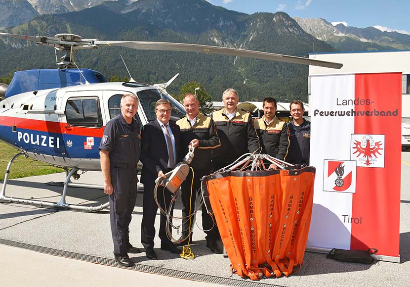 „Kleinere und größere Wald- und Wiesenbrände kommen im ganzen Land immer wieder vor. Der neue Löschwasserbehälter ‚Bambi-Bucket 1000‘ bringt jetzt wesentliche Vorteile für die Brandbekämpfung aus der Luft. Somit sind die Brandeinsätze mit dem Landeshubschrauber jetzt noch schneller und effektiver abzuwickeln und der Löschwasserangriff aus der Luft noch intensiver zu bewerkstelligen“, betonte LH Platter.