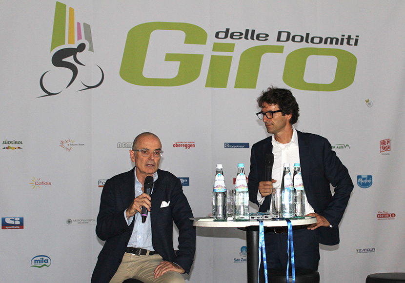 Zum Abschluss sprachen Vittorio Emili und Alexandra Mair zu den Anwesenden in der Messe Bozen. Emili ist 80 Jahre alt, kommt aus Rom und nimmt heuer zum 30. Mal an der Dolomiten-Radrundfahrt teil. „Ich habe 1963 den Militärdienst in Südtirol absolviert und mich in dieses Land verliebt. 1983 nahm ich dann zum ersten Mal am Giro teil und seither komme ich fast jedes Jahr wieder, zum Teil verbringt die ganze Familie ihren Urlaub hier. Nun hoffe ich, dass ich im kommenden Jahr zum 31. Mal mitradeln kann“, strahlte der rüstige Rentner, der als Beweis gilt, dass Radfahren bis ins hohe Alter möglich ist. Mair ist hingegen im Product Management der IDM tätig und verantwortet den Bereich Rad.